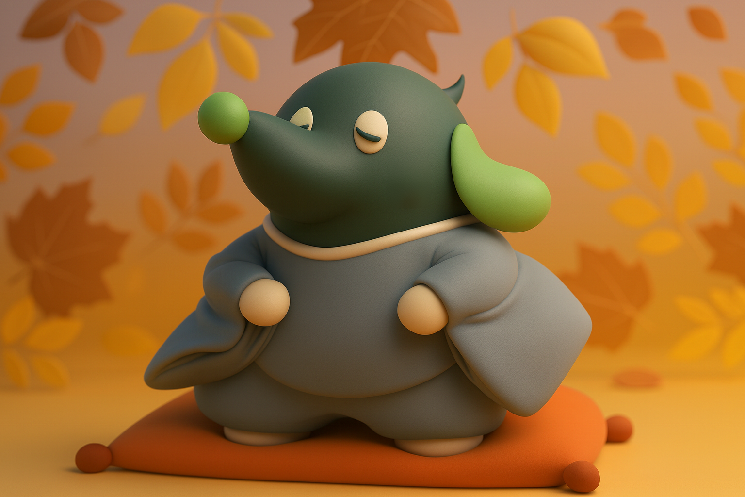 弊社のマスコットキャラクター「すこっぷ」も、今日は特別に和装姿で登場!