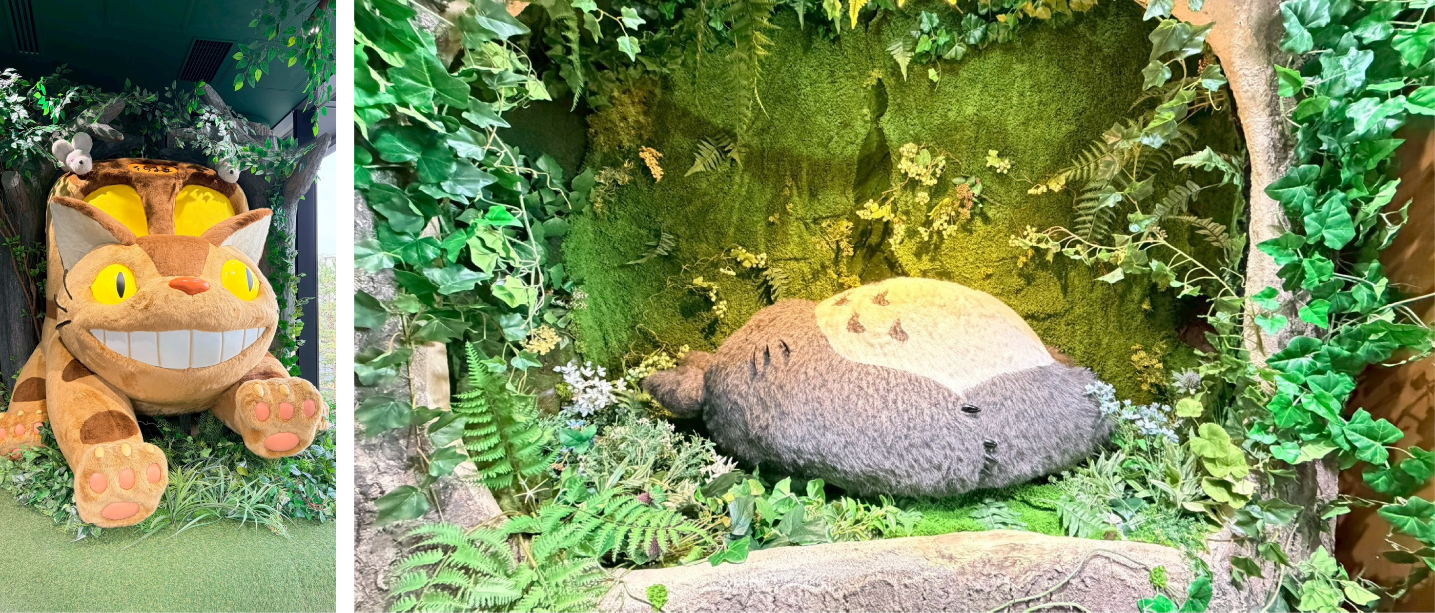 ジブリがいっぱい どんぐり共和国:大きなトトロやネコバスがお出迎え。木の温もりを感じる店内に、ほっこりと癒やされました。