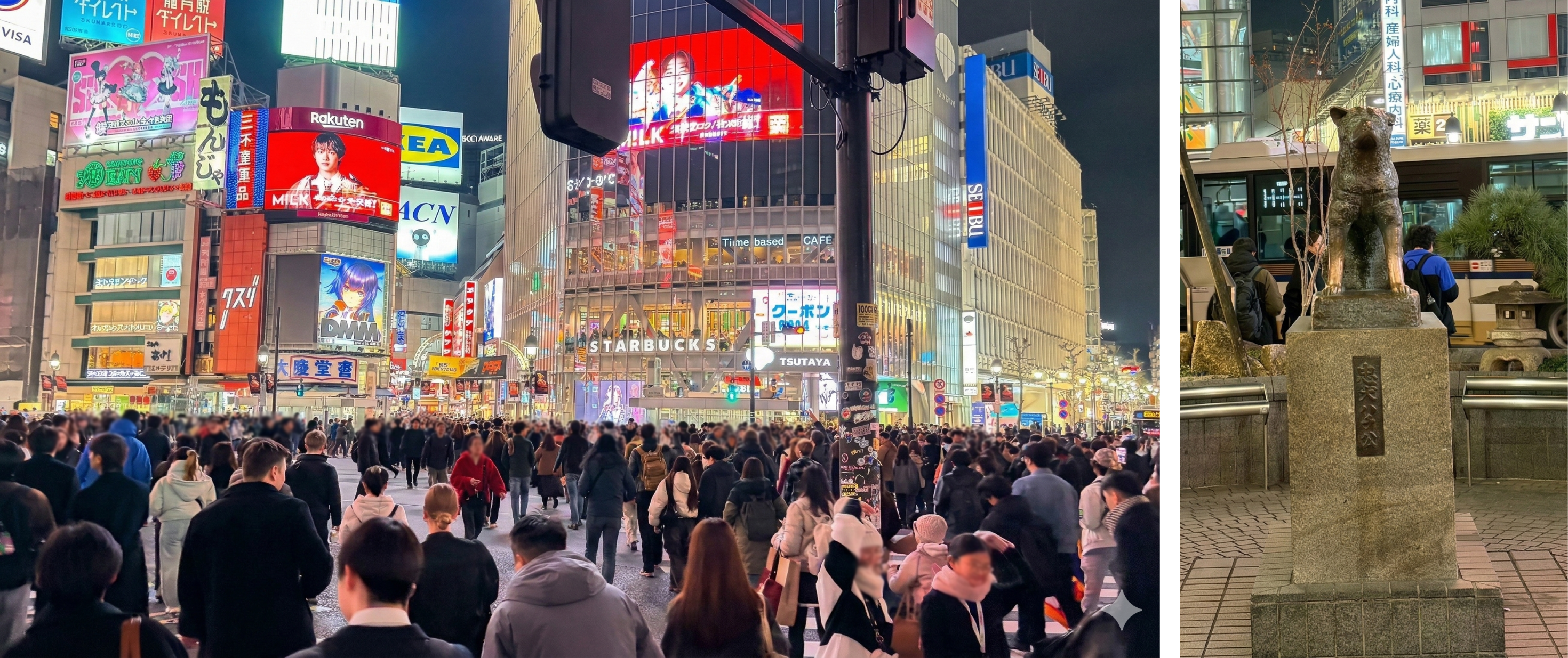 都会の熱気に圧倒!渋谷のスクランブル交差点とハチ公