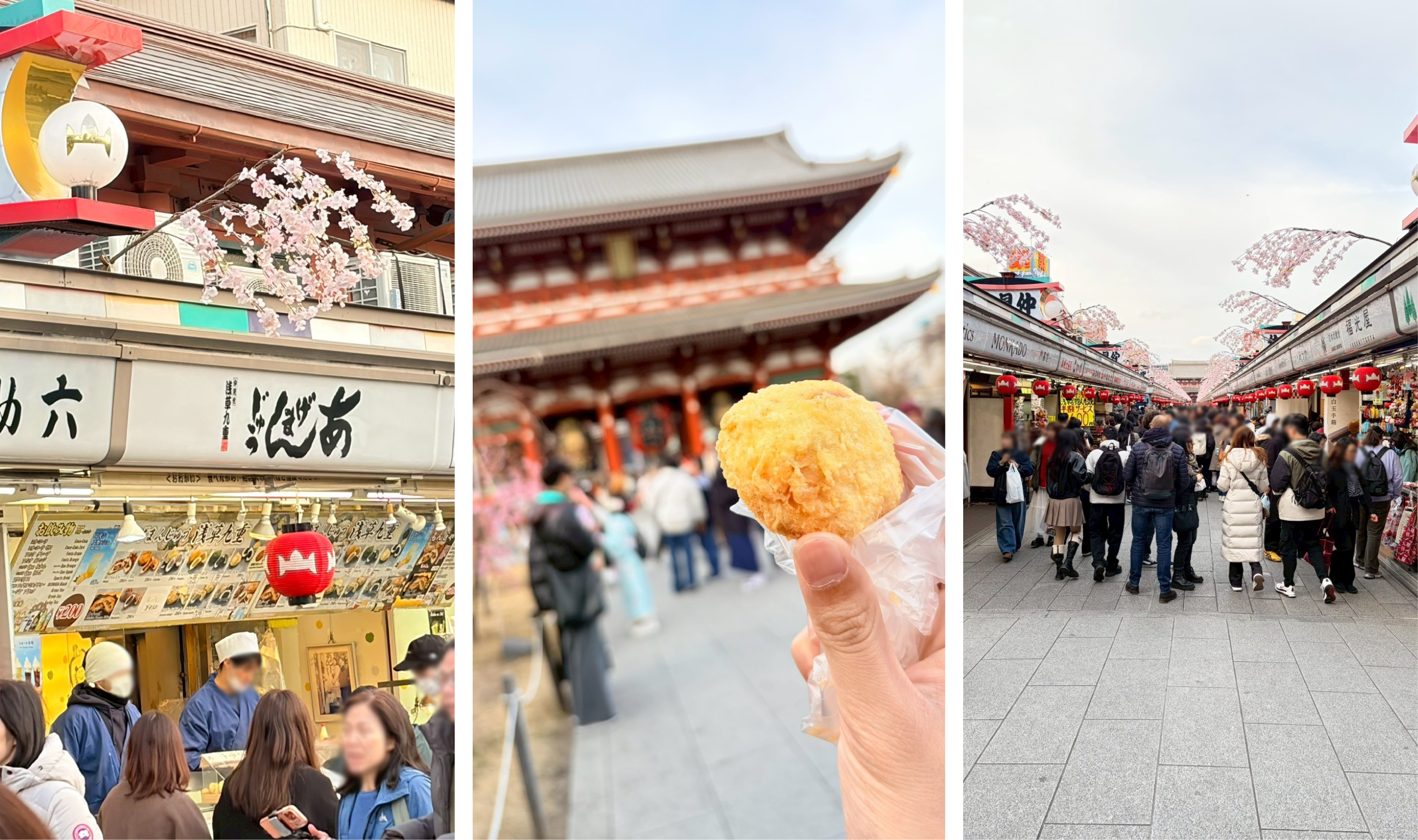 仲見世通りでいただいた「揚げまんじゅう」は、外はカリッ、中はホクホクで絶品。