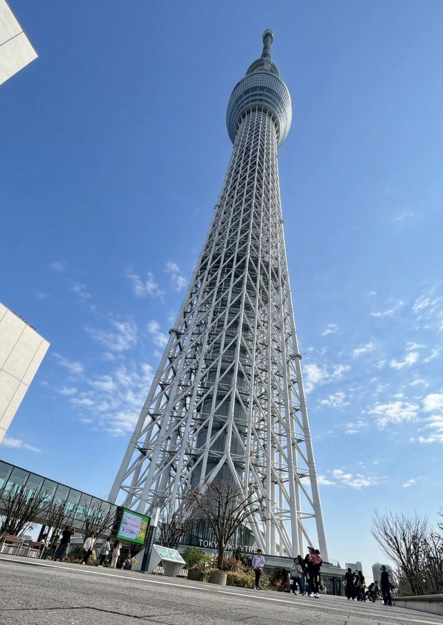 真下から見上げると、その高さ(634m!)と幾何学的な鉄骨の美しさに改めて圧倒されます。