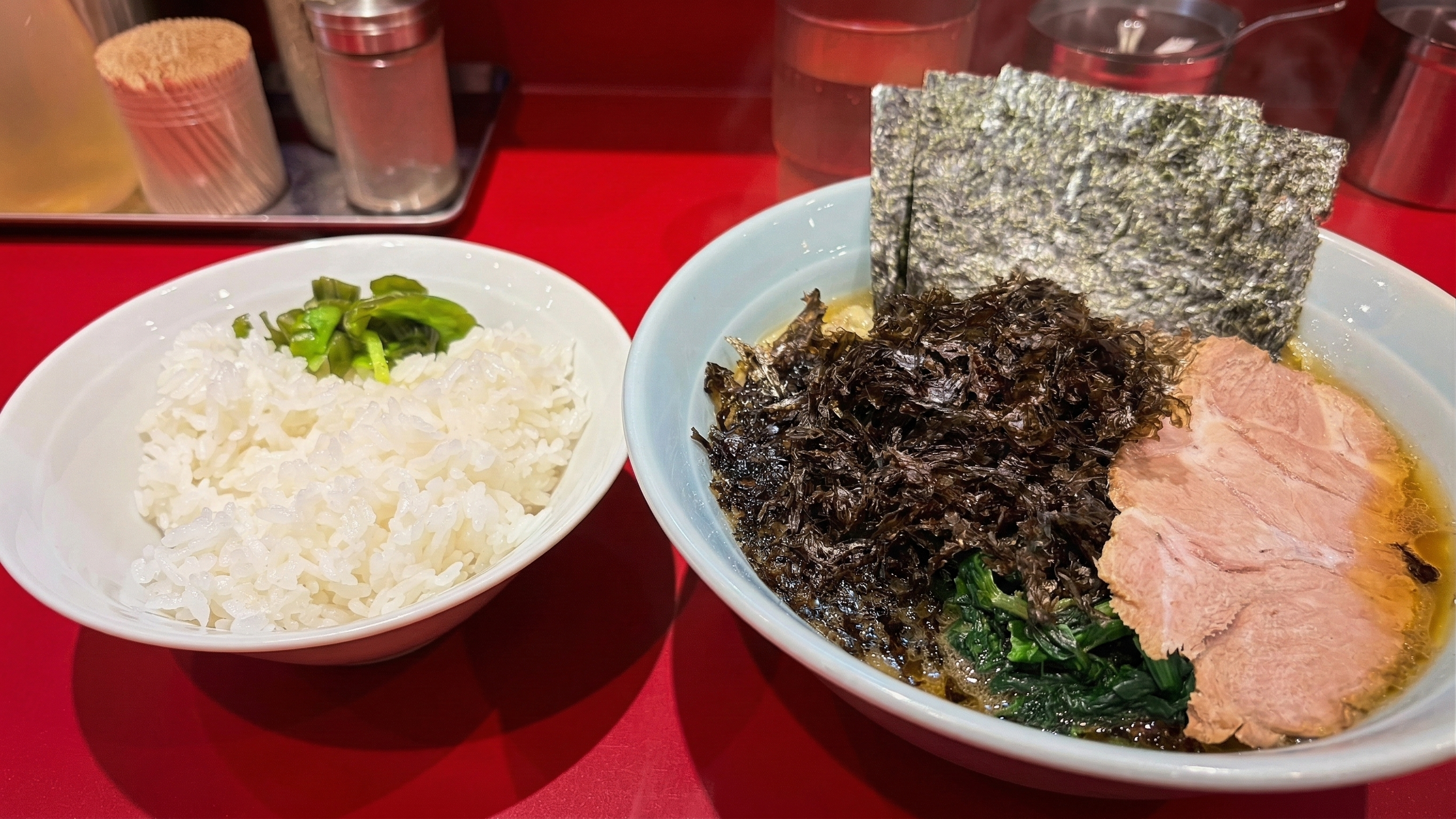 武蔵家といえばライスが無料(しかもおかわり自由!)ということで、スープを染み込ませた海苔と一緒にライスもがっつり完食。