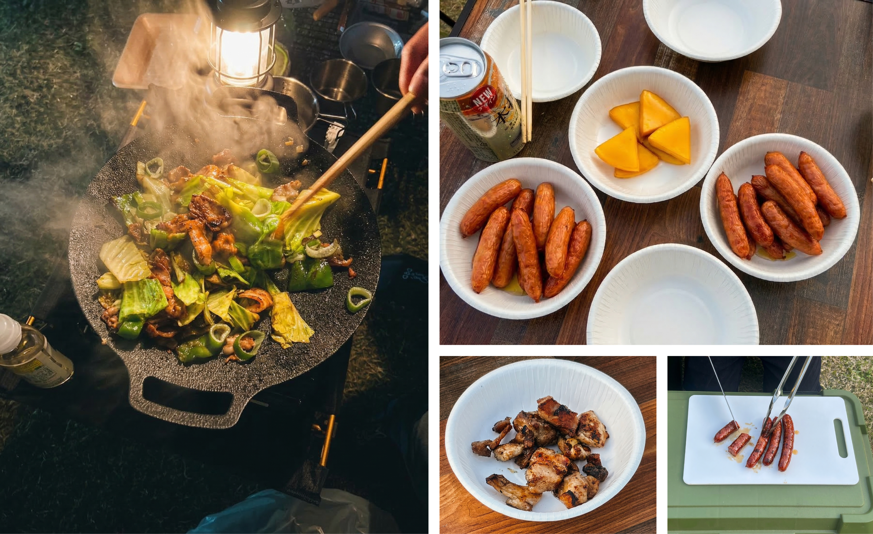 マルチグリドルでお肉と野菜を豪快に焼き、焼きたてのソーセージをつまみながら談笑。これぞキャンプの醍醐味ですね。
