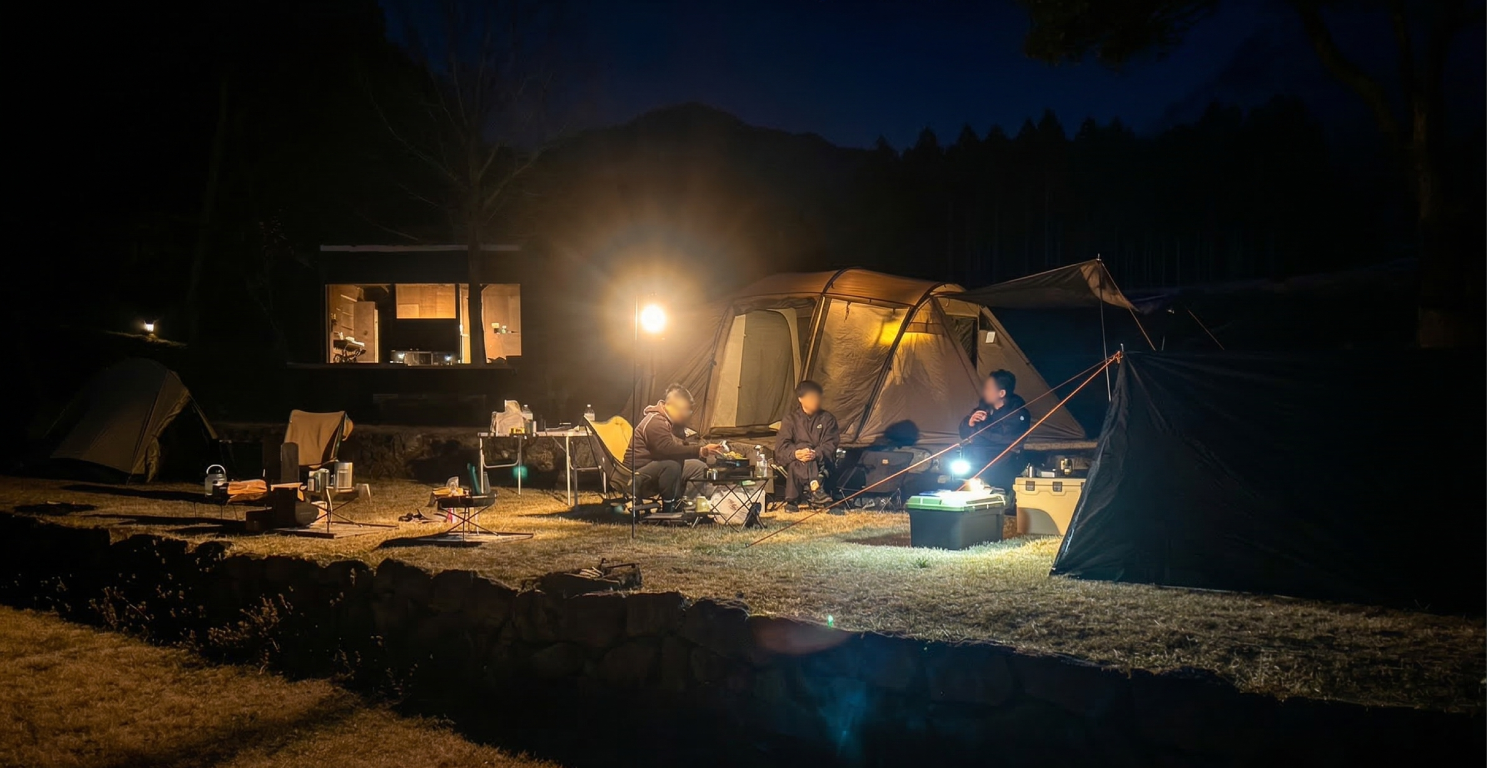 夜の帳が下りる頃、ランタンの灯りに照らされたテントサイトは、言葉にできないほど幻想的。仕事の忙しさをふと忘れさせてくれる、贅沢な時間が流れます。