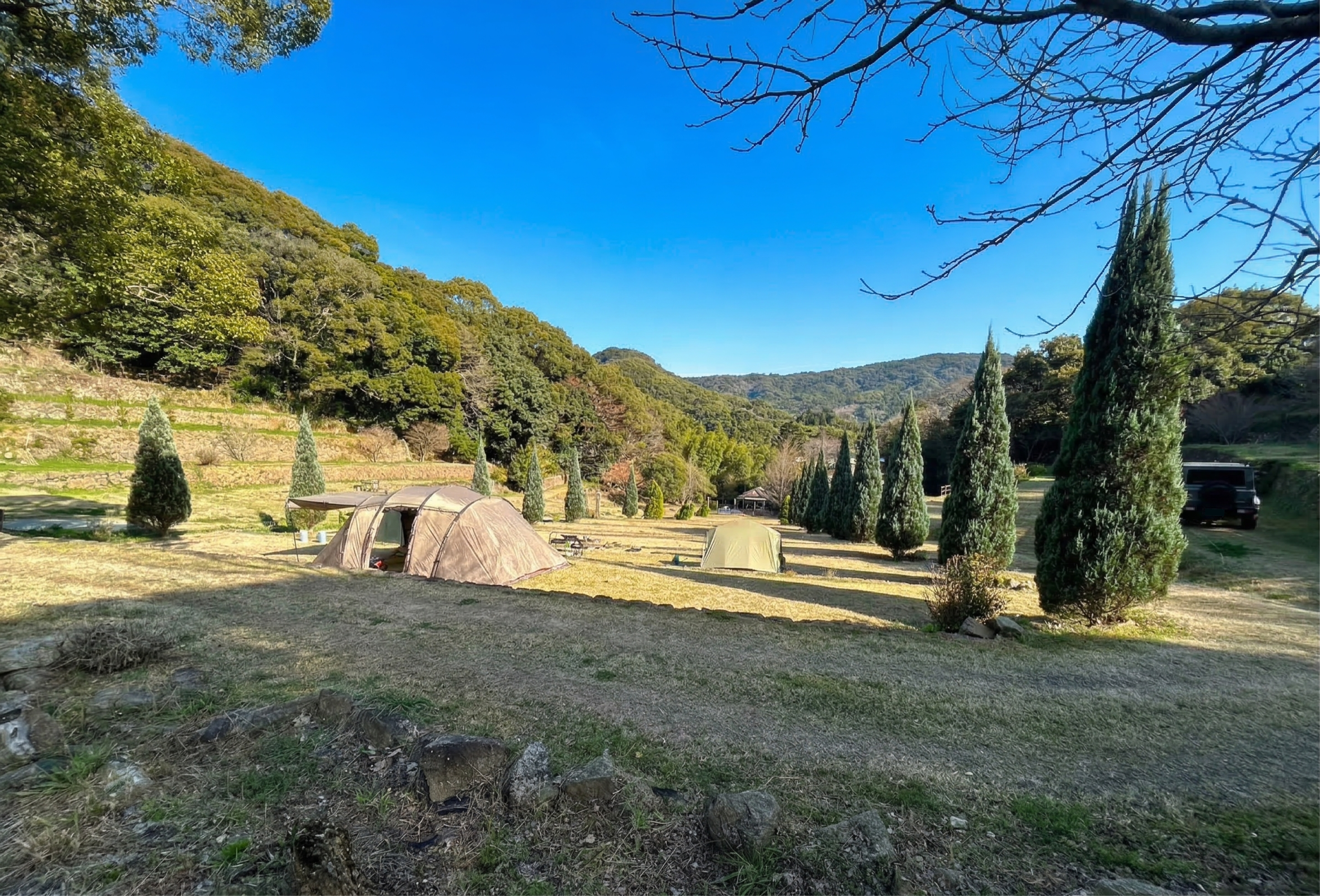 かつての蜜柑山がキャンプ場に!「橘香園」の開放感