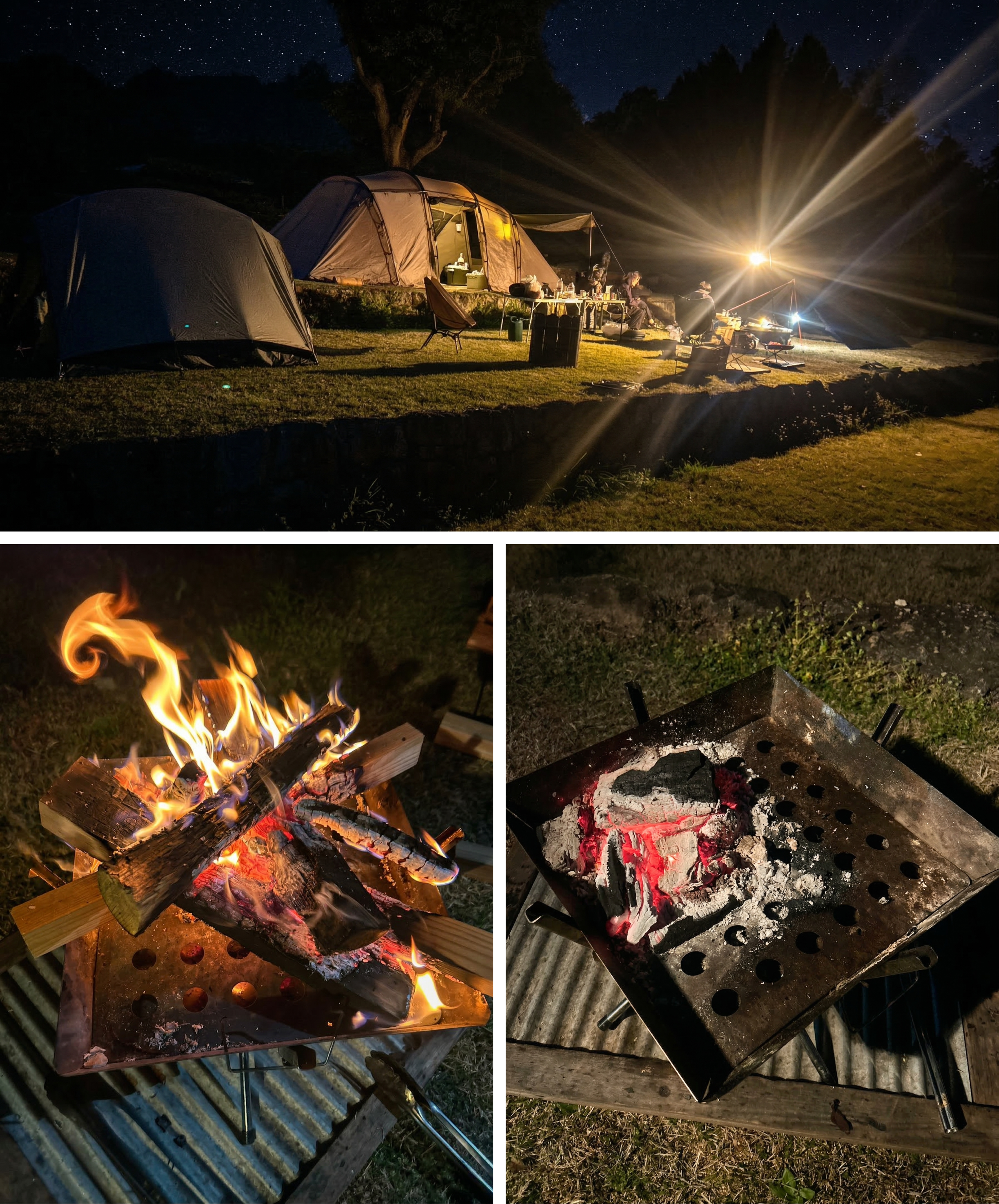幻想的な夜のキャンプ。