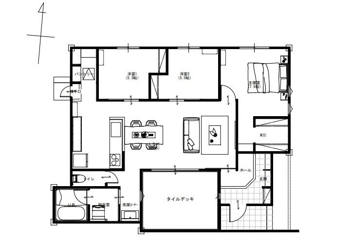 パントリーや**ウォークインクローゼット(WIC)**など、豊富な収納力で生活しやすい間取り設計。(3LDK)
