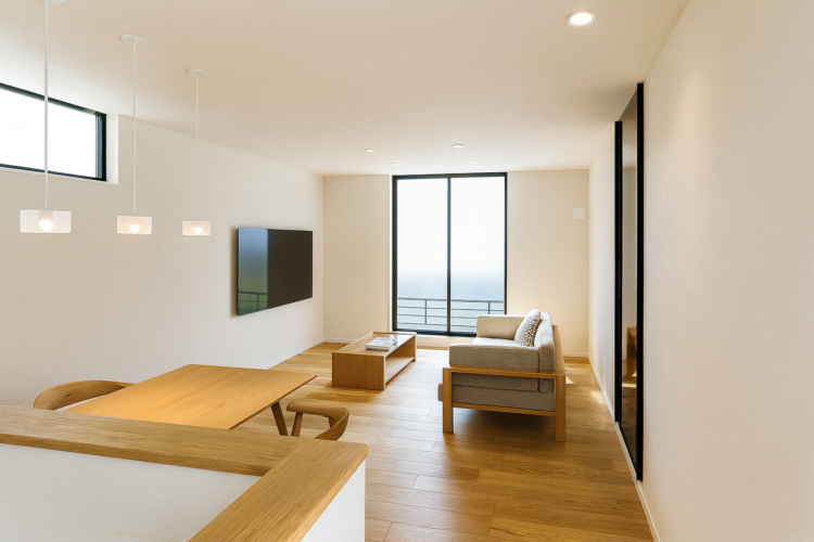 開放的なLDKは、大きな窓から自然光が差し込む明るい設計で、ご家族がゆったりと寛げます。