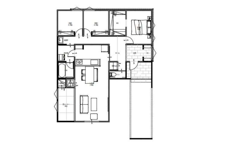 4SLDKの平屋建て。 全てがワンフロアで完結する快適な生活動線です。