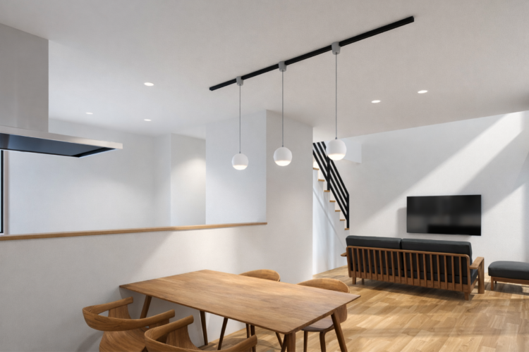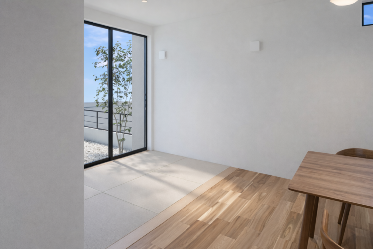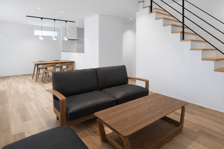 | POINT | スーパーやコンビニ、ドラッグストアなどが徒歩約10分圏内の生活便良好な新規分譲地内の建売です。 都会的でスタイリッシュなキューブ型の外観が目を引きます。 正面の開口部をあえて絞り、大きな壁面を活かしたデザインにすることで、外からの視線を遮りつつ、唯一無二の重厚な邸宅感を演出しています。 |