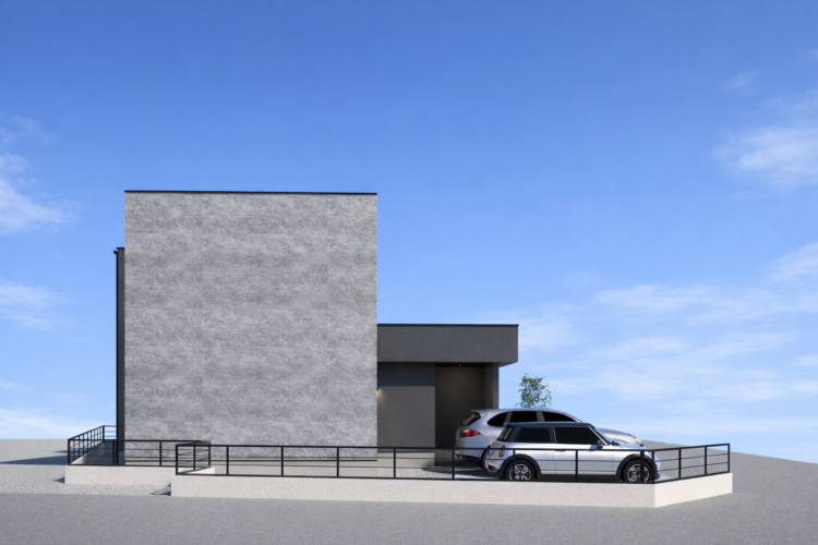 黒とグレーでまとめたシックな外観