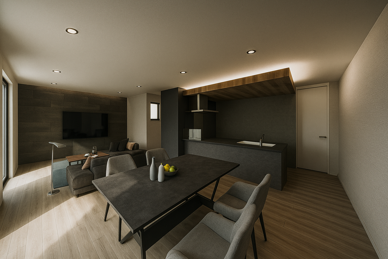 素材感と光の効果で、日常をより心地よく、上質に彩る空間です。