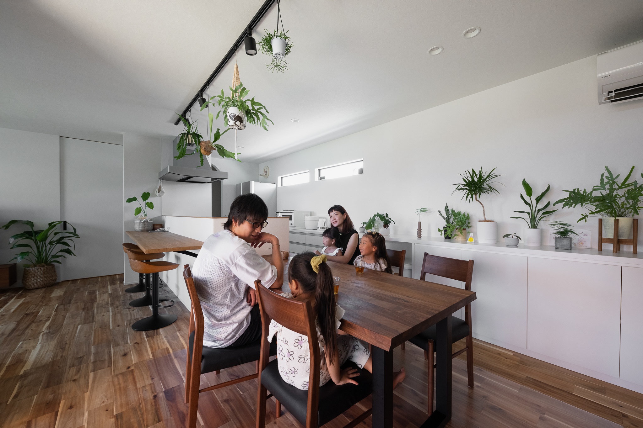 パントリーや階段下、各室クローゼットなど“見せない収納”を計画し、リビングはいつもスッキリ。