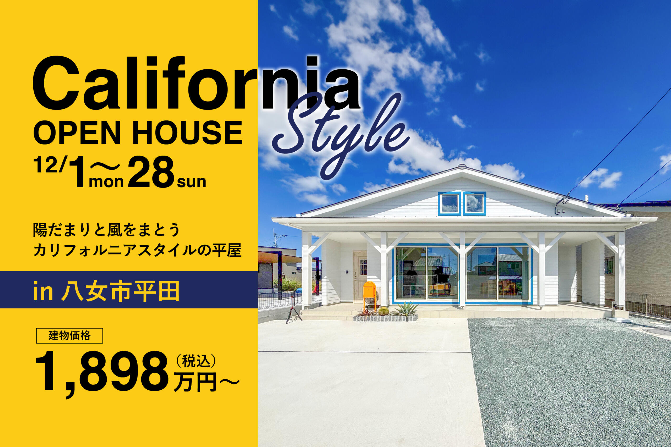 【カリフォルニアスタイル平屋完成見学会】