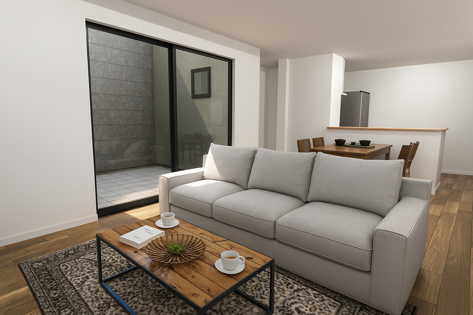 リビングでくつろぐ際もカーテンを閉める必要がない為、気持ちよく過ごせます。
