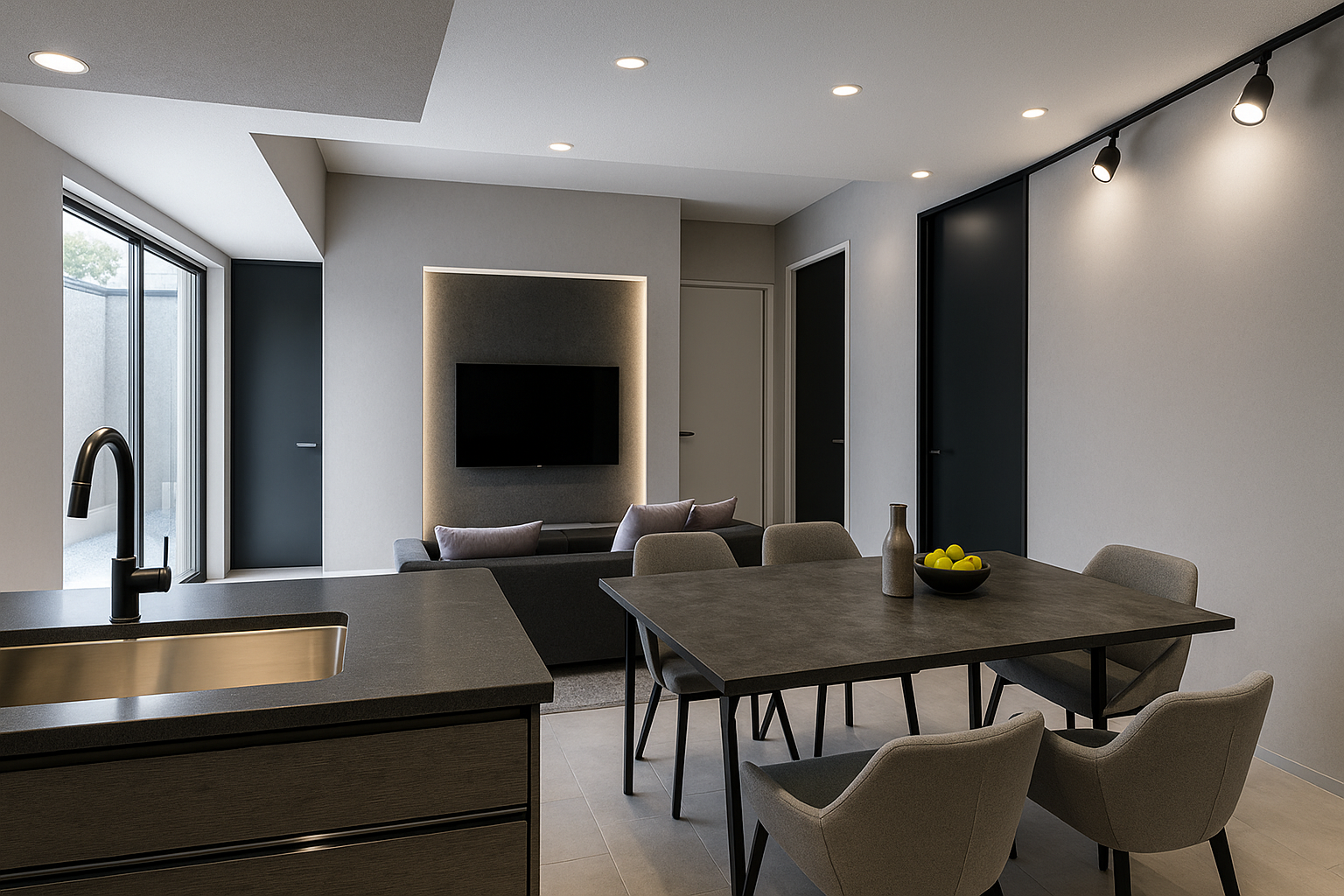 落ち着いたトーンでまとめたホテルライクなリビングに、外部視線を遮る中庭を組み合わせました。人目を気にせず、お子さまやご友人とゆったり過ごせる安心と心地よさの両立。室内にいながら外の開放感を楽しめる、贅沢な日常が叶います。自宅で働くという新しい選択肢を、もっと快適に。