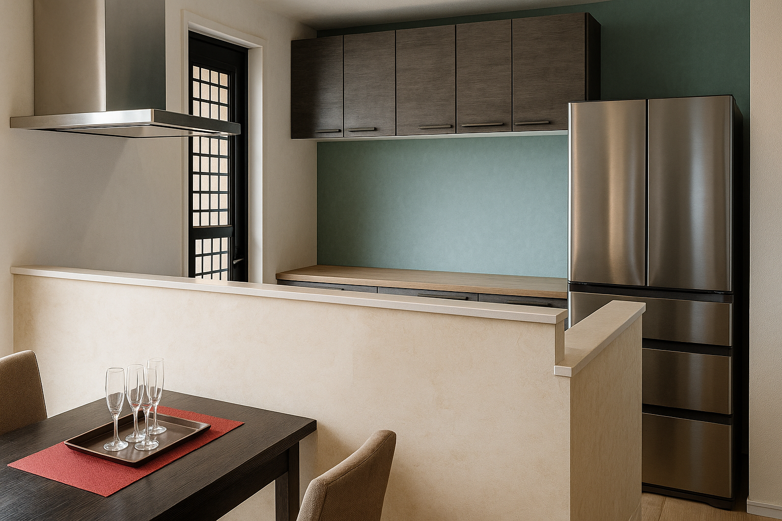 ガレージからそのままキッチンへ出入りできる動線を採用し、雨の日や荷物が多い日の負担を軽減。