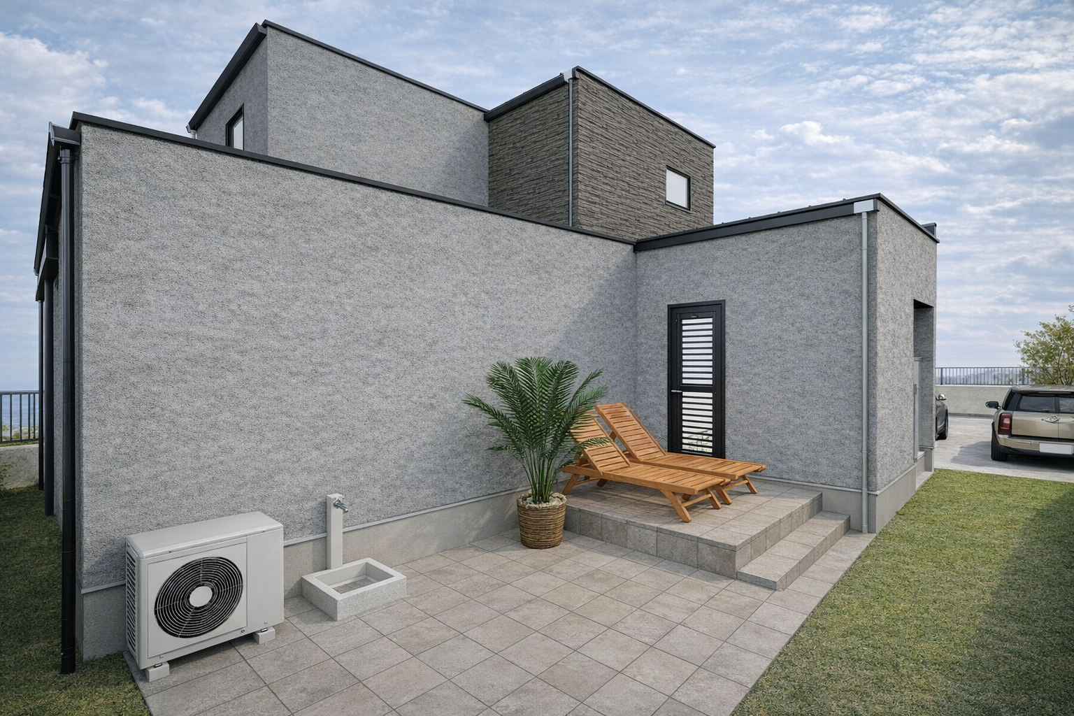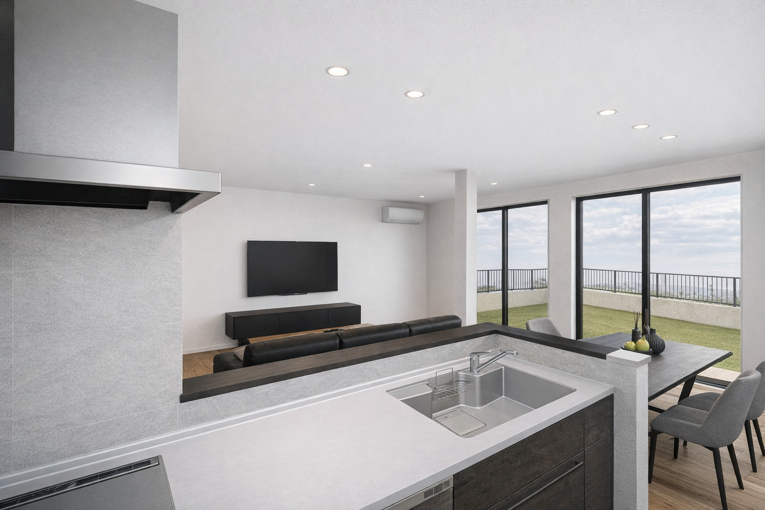 黒とグレーが織りなすモノトーンの外観は、無駄をそぎ落とした美しさを際立たせ、住まい全体に静かな存在感を与えます。