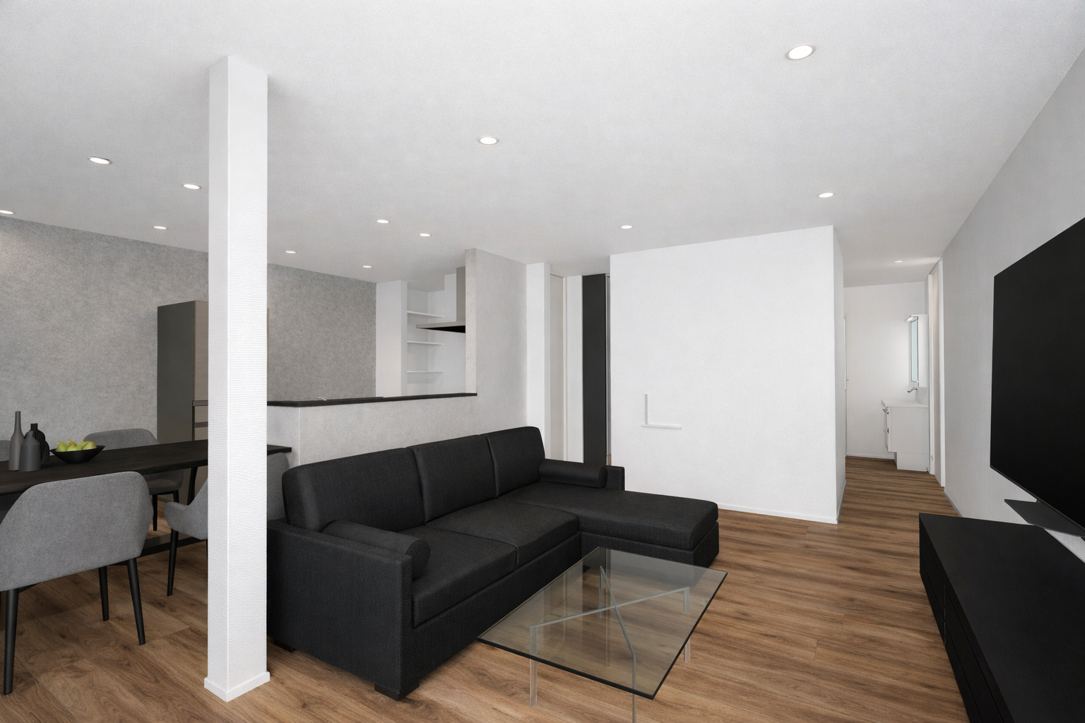 “黒×グレーの美学”を体現したこの住まいは、シンプルだからこそ際立つ存在感と、凛とした空気感が魅力。