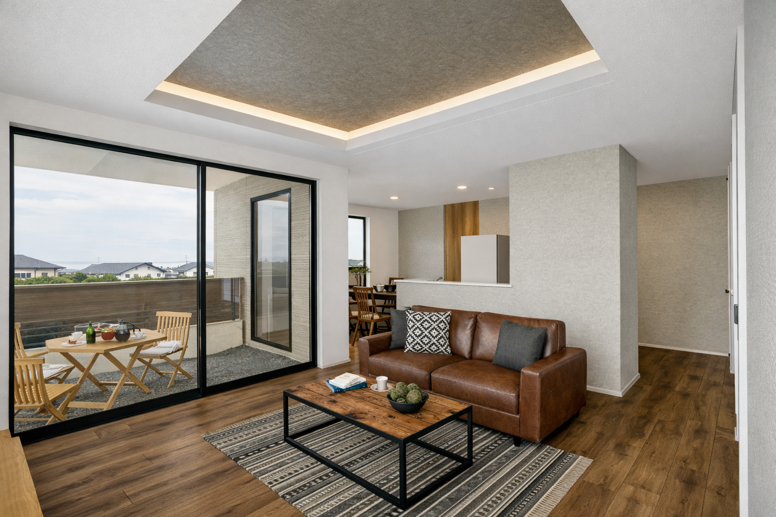 昼は自然光がやさしく差し込み、空間全体を明るく、開放的に感じさせるLDK。