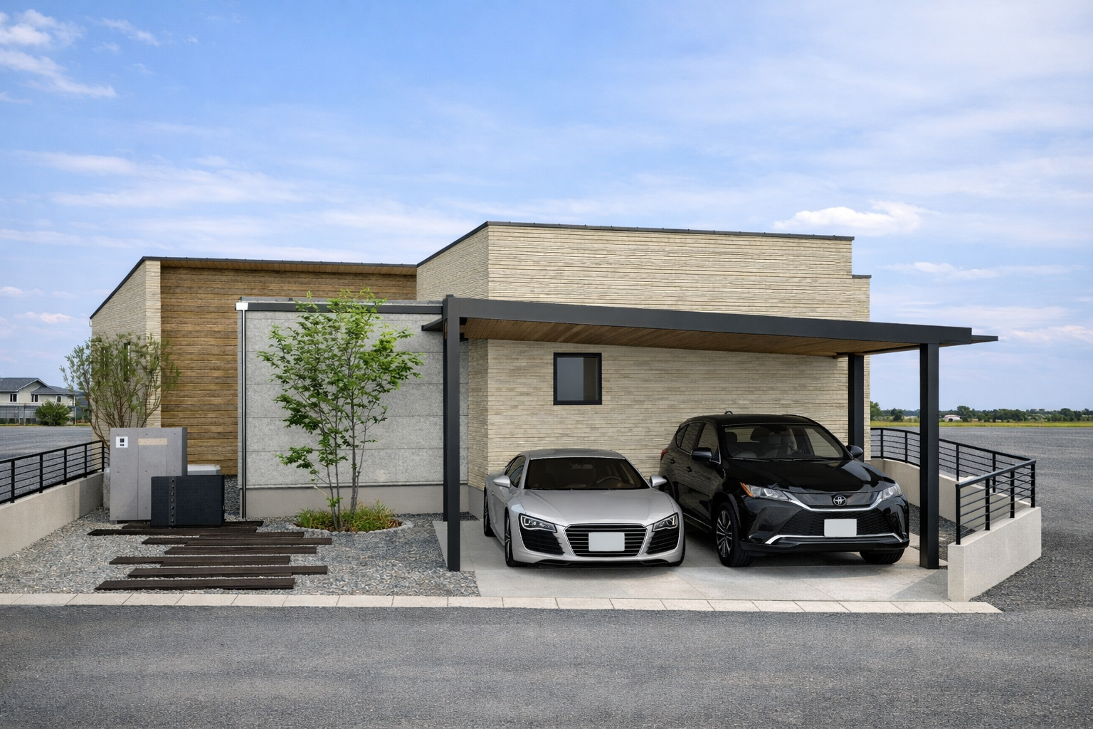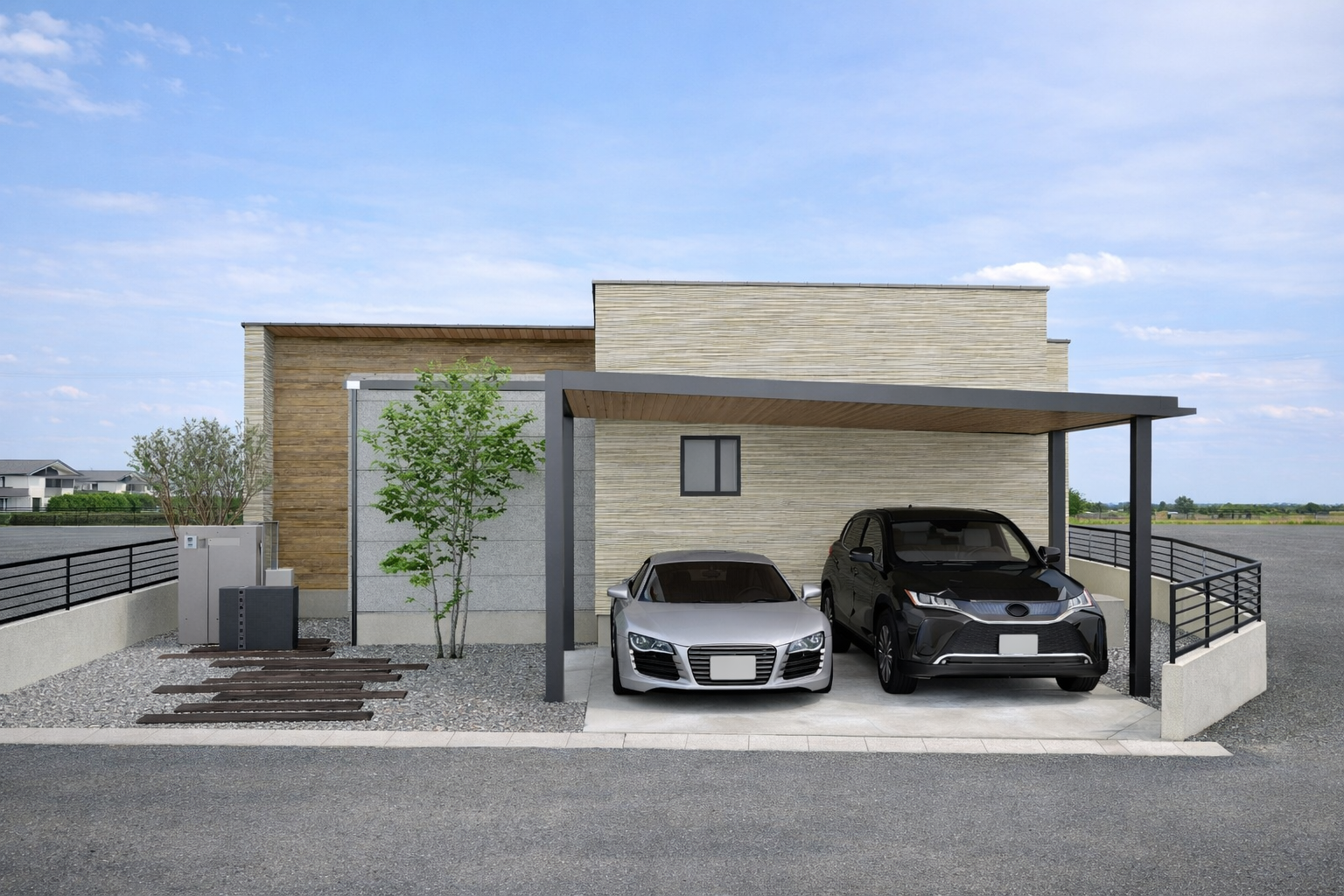 主張しすぎない素材選びが、街並みに自然と溶け込む外観をつくりました。