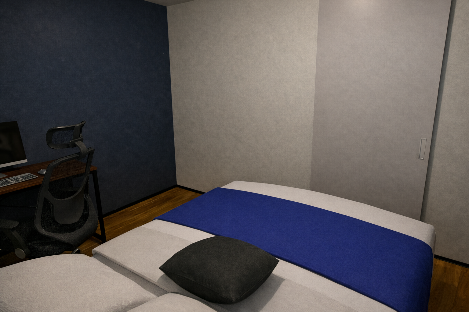 リビングと完全に分断しない程よい繋がりがあるから、気配は感じつつ集中もできる“ちょうどいい距離感”がつくれます。
