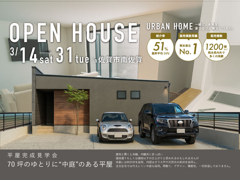 2008年に福岡県大牟田市で事業を開始し年間契約20棟弱から始まった私達の家づくりは年々棟数を伸ばし続け、2015年には通算契約棟数300棟、2019年には140棟以上の契約を達成いたしました。その甲斐あって、熊本県北地域(荒尾玉名地区)で商圏販売棟数ナンバーワンという輝かしい称号をいただきました。同時に実店舗も熊本県荒尾から玉名〜福岡県柳川へ範囲拡大し2017年には熊本市内の平成へ、2018年には沖縄にもオフィスを構え、2020年には佐賀へ出店いたしました。全てはご支持を頂いている地域の皆様のお陰でございます。これからもアーバンホームは地域密着しお客様に寄り添う事を大切に、地元・皆様のお役に立てるように精進してまいります。