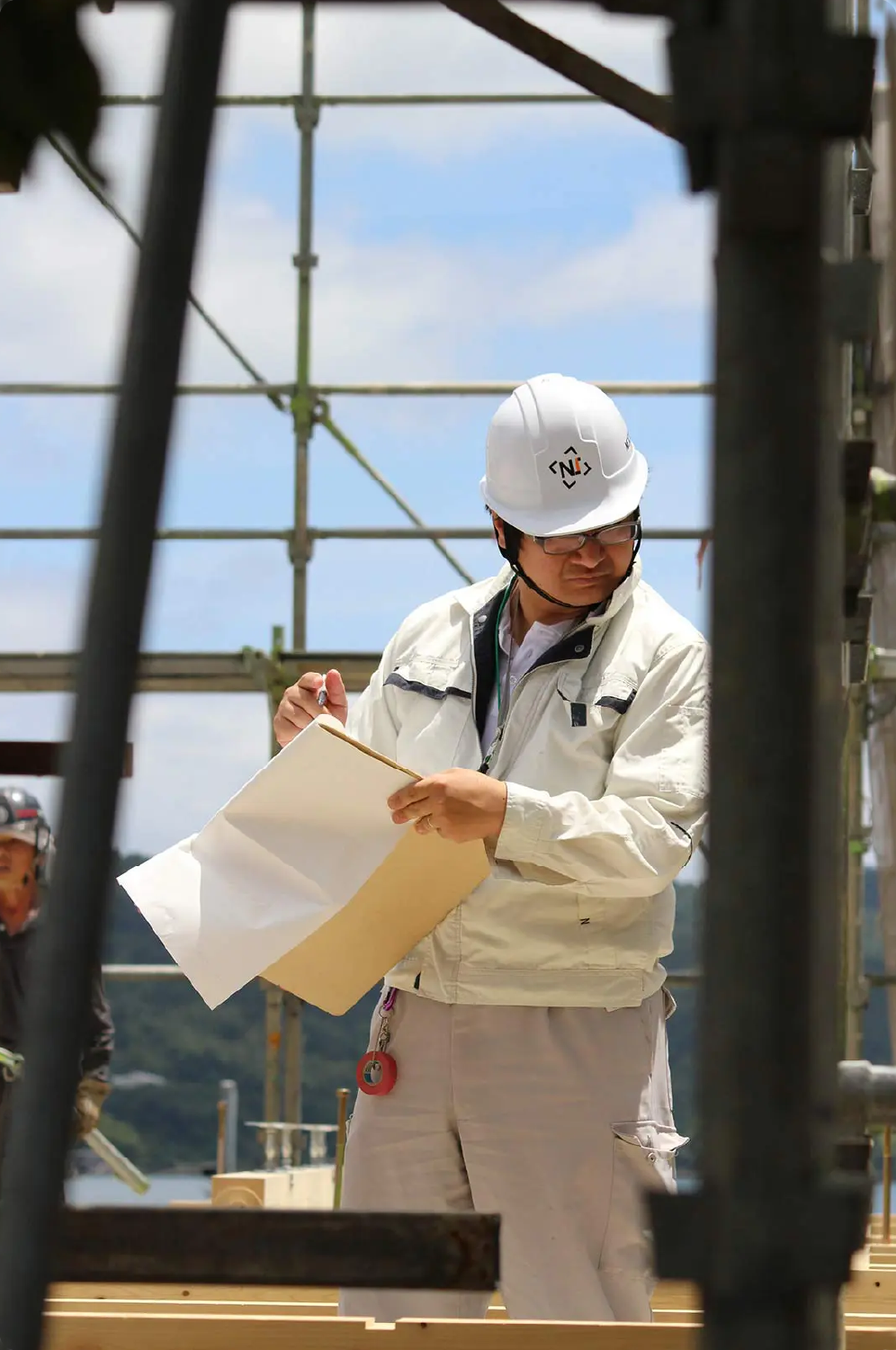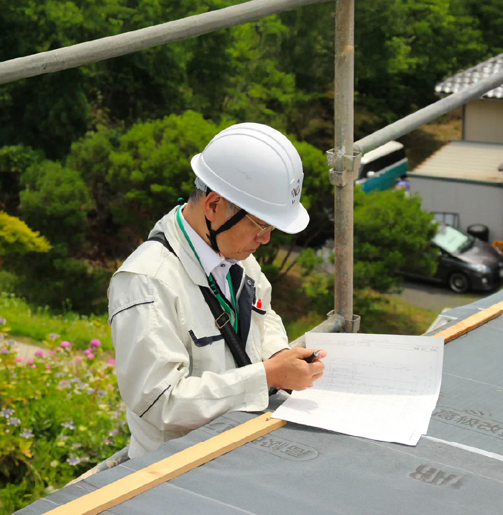 大切な財産を責任をもって建てた証を記録として残すため、建築工事完工後、お客様に「現場監査記録書」を一冊の冊子にしてお渡しいたします。また、各工程の「施工品質監査済証」を発行させていただいております。
