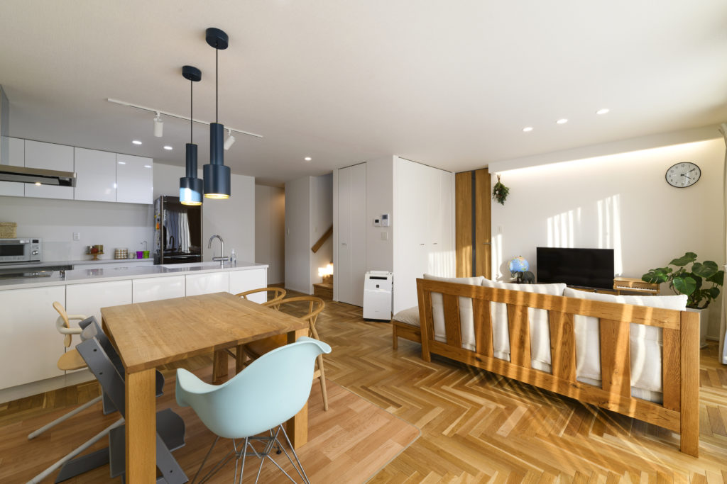 元々賃貸アパートに住んでいたY様。家族が増えたことでアパートが狭くなり、アパートの賃貸を払うより家を建ててローンを組んだ方が良いと思ったのがY様がお家を建てようと思ったきっかけ。働く上で職場から近いことが必須という条件のもと土地を探していたところ、アーバンホームの土地があり担当者の対応が良かったのが決め手。奥様がシンプルなお家にしたいと考えていたこともあり、外壁には白色の塗り壁を採用。内観は広々としたLDK空間や収納など様々な点にこだわり、その中でもヘリンボーン張りの床が一番こだわったポイントだそう。休日は子供たちと一緒にゆったり過ごしたり、親戚などを呼んでご飯を振る舞ったり楽しく話したりなど、ホームパーティのようなことをしたいとのこと。ご家族みんなのこだわりが詰まったお家に仕上がりました。