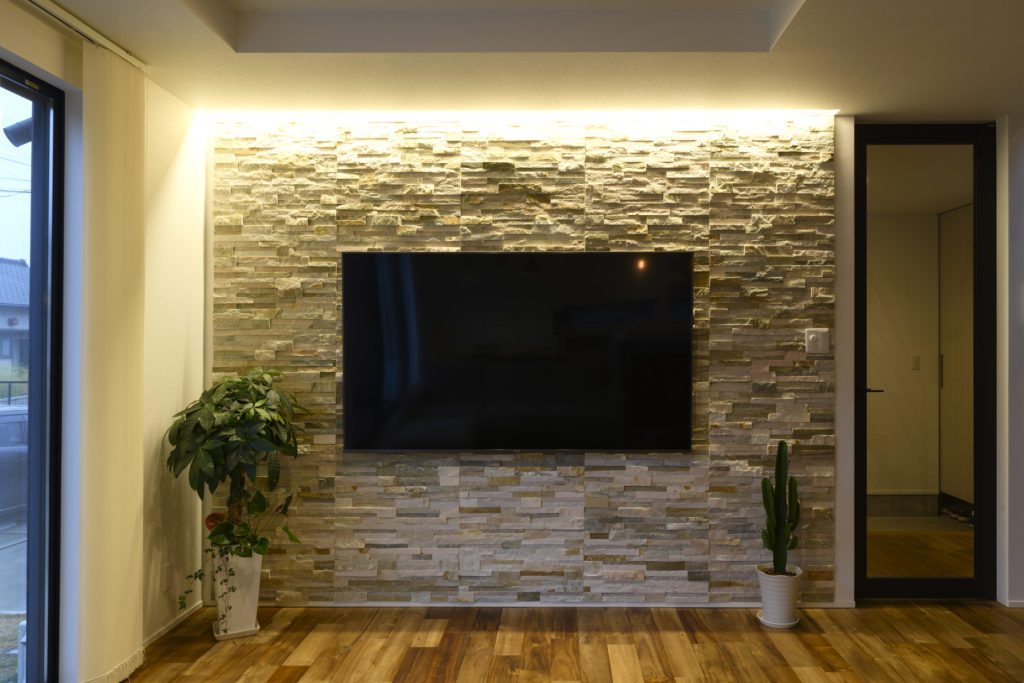 消費税が上がるということもあり、お家を検討していた際にアーバンホームのホームページに巡り合ったのがN様がアーバンホームへ依頼した決め手。多くの住宅会社がある中、N様がアーバンホームを選んだのはご家族のみんなが造りたいと思っている理想のお家に近かったからだそう。完成した住まいはキッチンからLDK空間全体を見渡せる間取りが特徴的。テレビ後ろの石貼り壁、折り上げ天井、アクセントクロスなど様々な点にこだわっており、中でもリビング階段は色んな形状を提案してもらい一番良い形を一緒に選んだとのこと。休日は庭でバーベキューをしたり、親戚などを呼んでご飯を食べたり映画などを見たいようです。