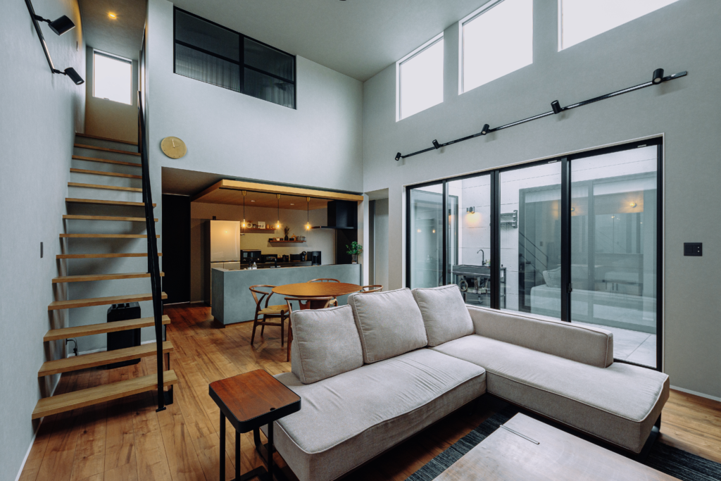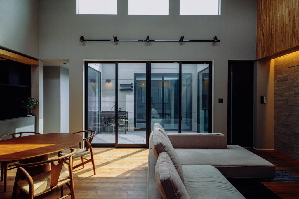 外からの視線を完全にシャットアウトでき、空間的にも精神的にも開放的な暮らしが実現しました。