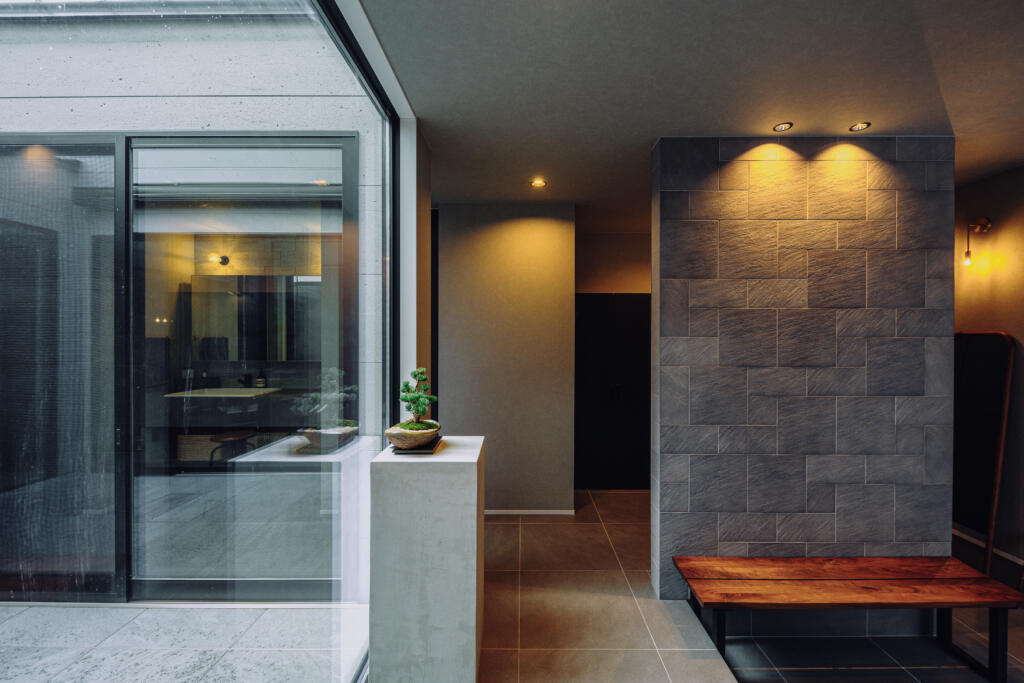 オーナー様のプライベートとプライバシーを守る、見せない暮らしのテーマに沿った住まいが実現しました。