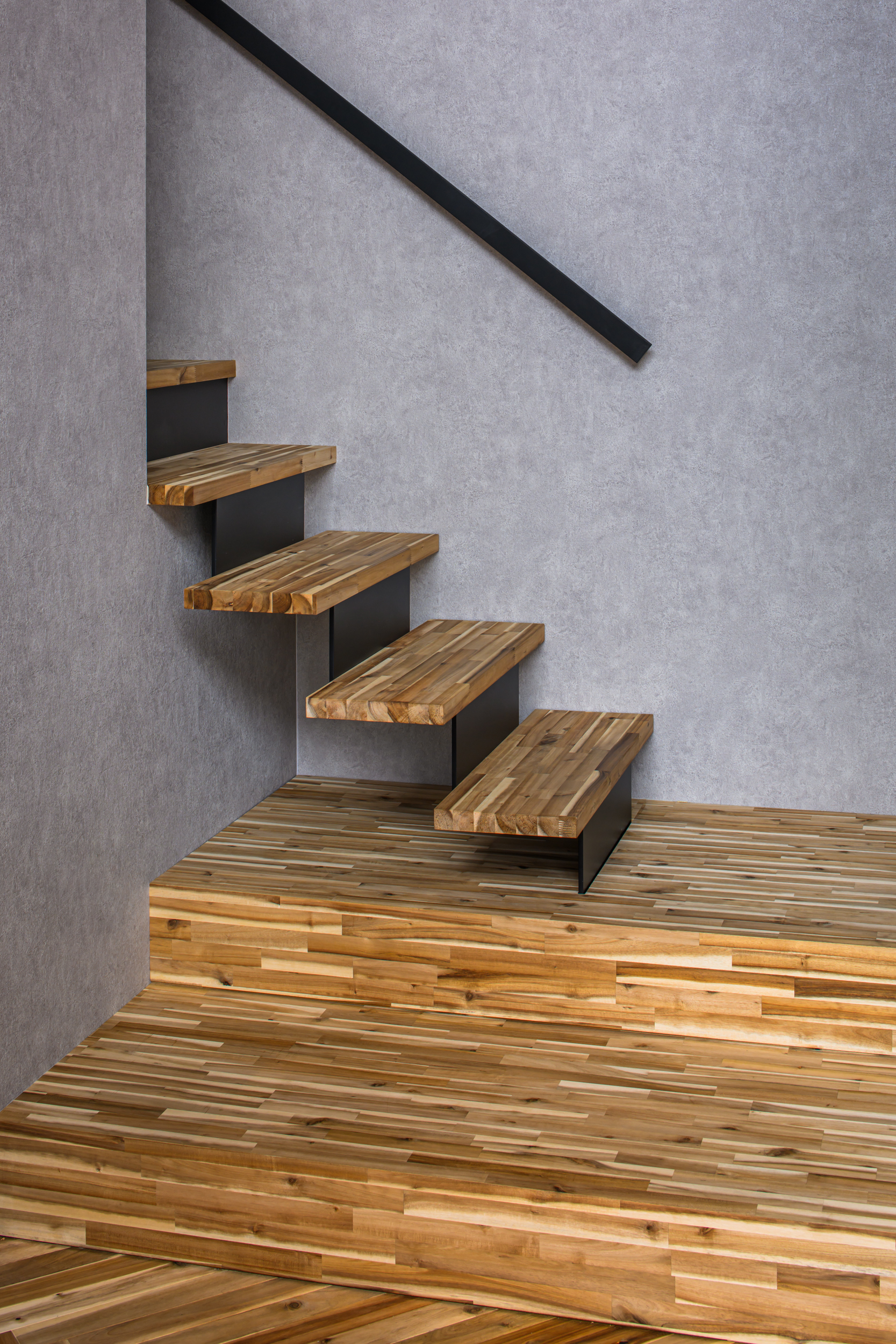 グレーを基調とした落ち着いた色合いが、木の温もりをより一層引き立てます。