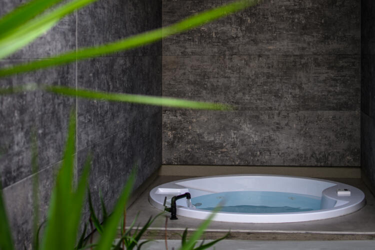 控えめな照明が幻想的な雰囲気をつくり出し、日常を離れて“整う”ひとときを演出。