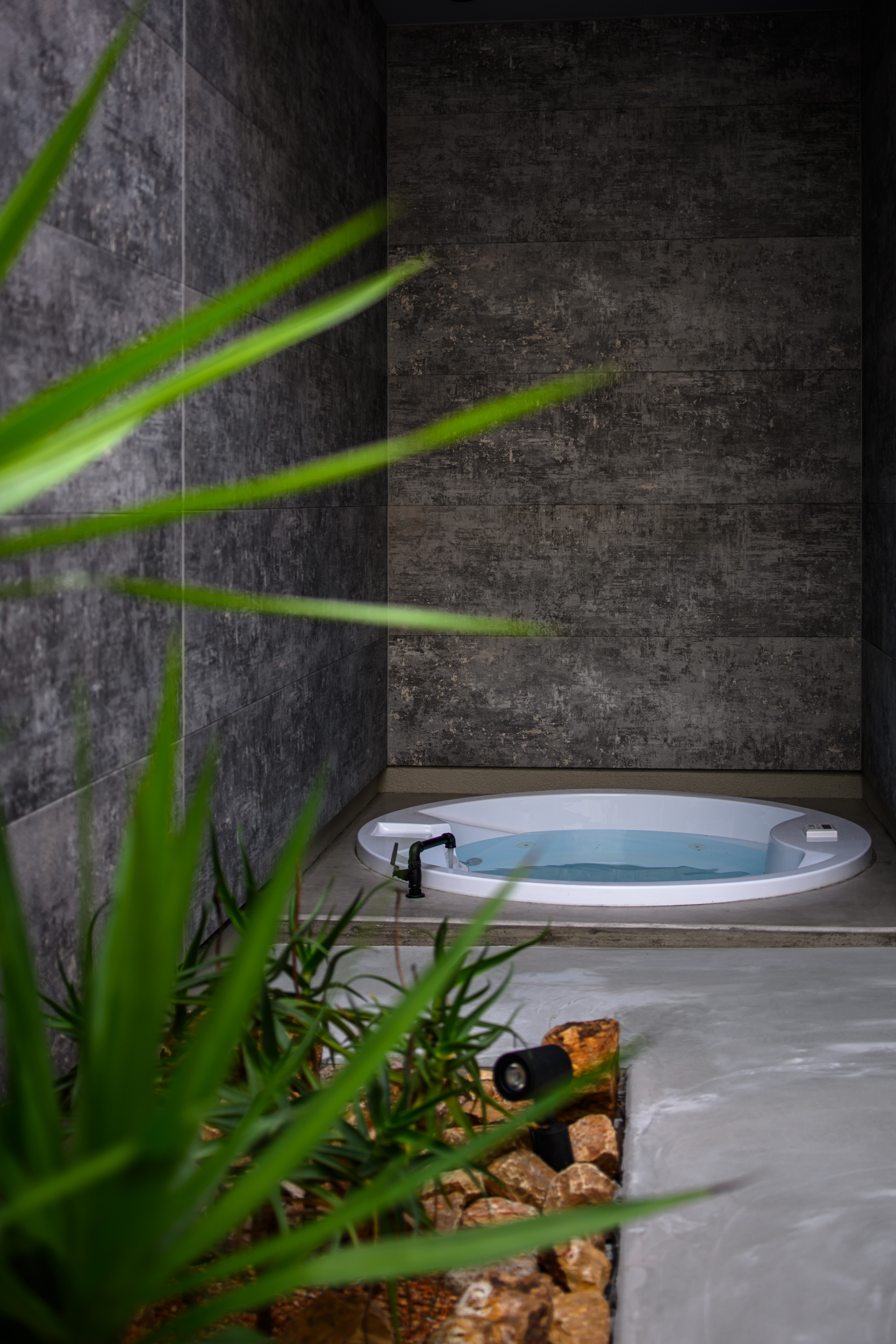 ジャグジーを備えたプライベートテラスは、まるで都市の中の隠れ家リゾートのよう。